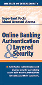 “Online Banking Authentication & Layered Security,” includes an explanation of multi-factor authentication, the value of layered security, the threat assessment process by financial institutions, the need for advanced controls and possible additional verification procedures. Also included are consumer protections under federal law and security measures customers can take.