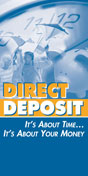 "Direct Deposit” provides your customers seven ways they can benefit from this key bank offering, from payroll to direct deposit of stock dividends. It conveys key messages on safety and convenience, plus an at-a-glance matrix showing how direct deposit beats paper checks for timeliness, efficiency, safety and security.